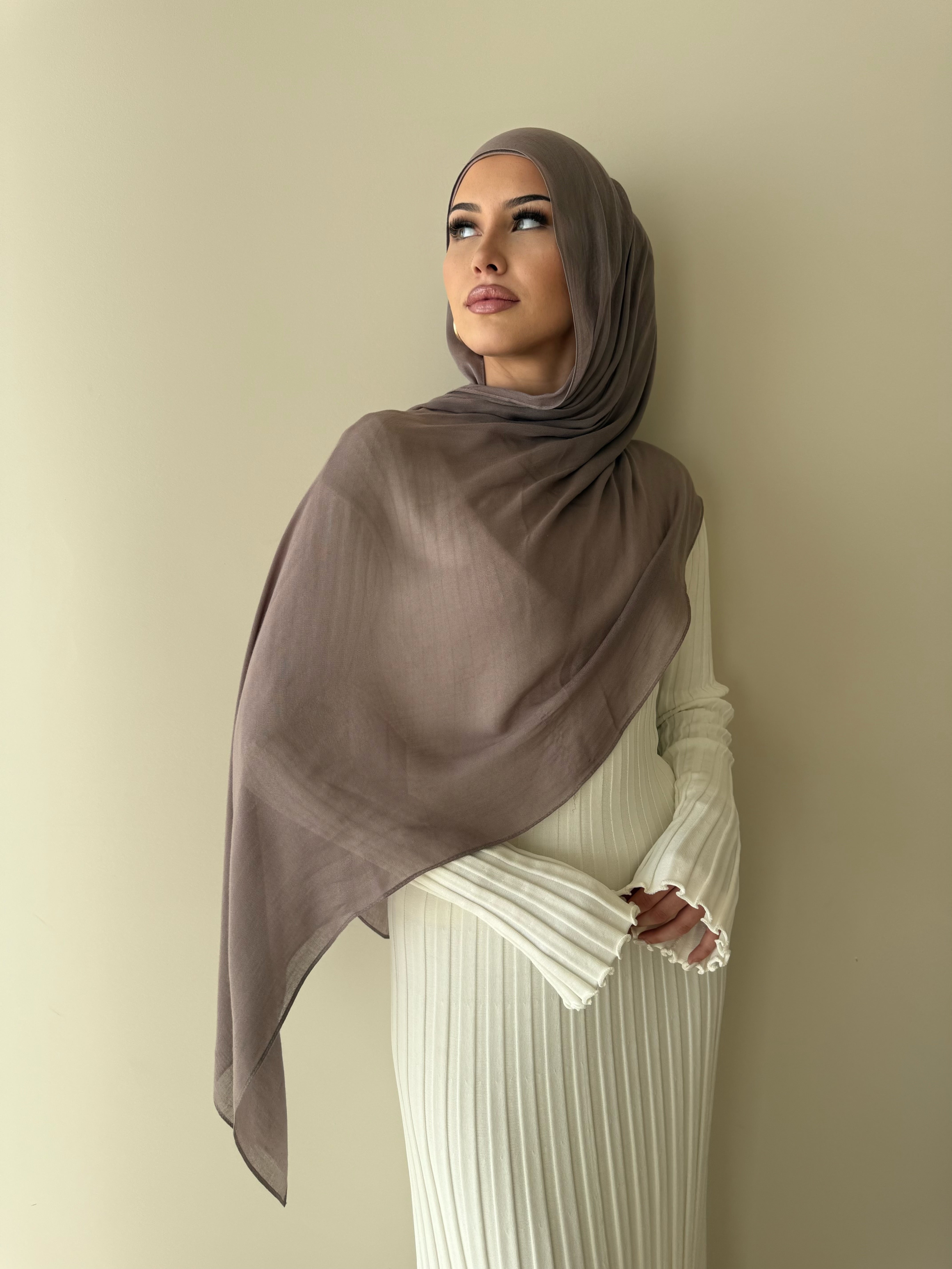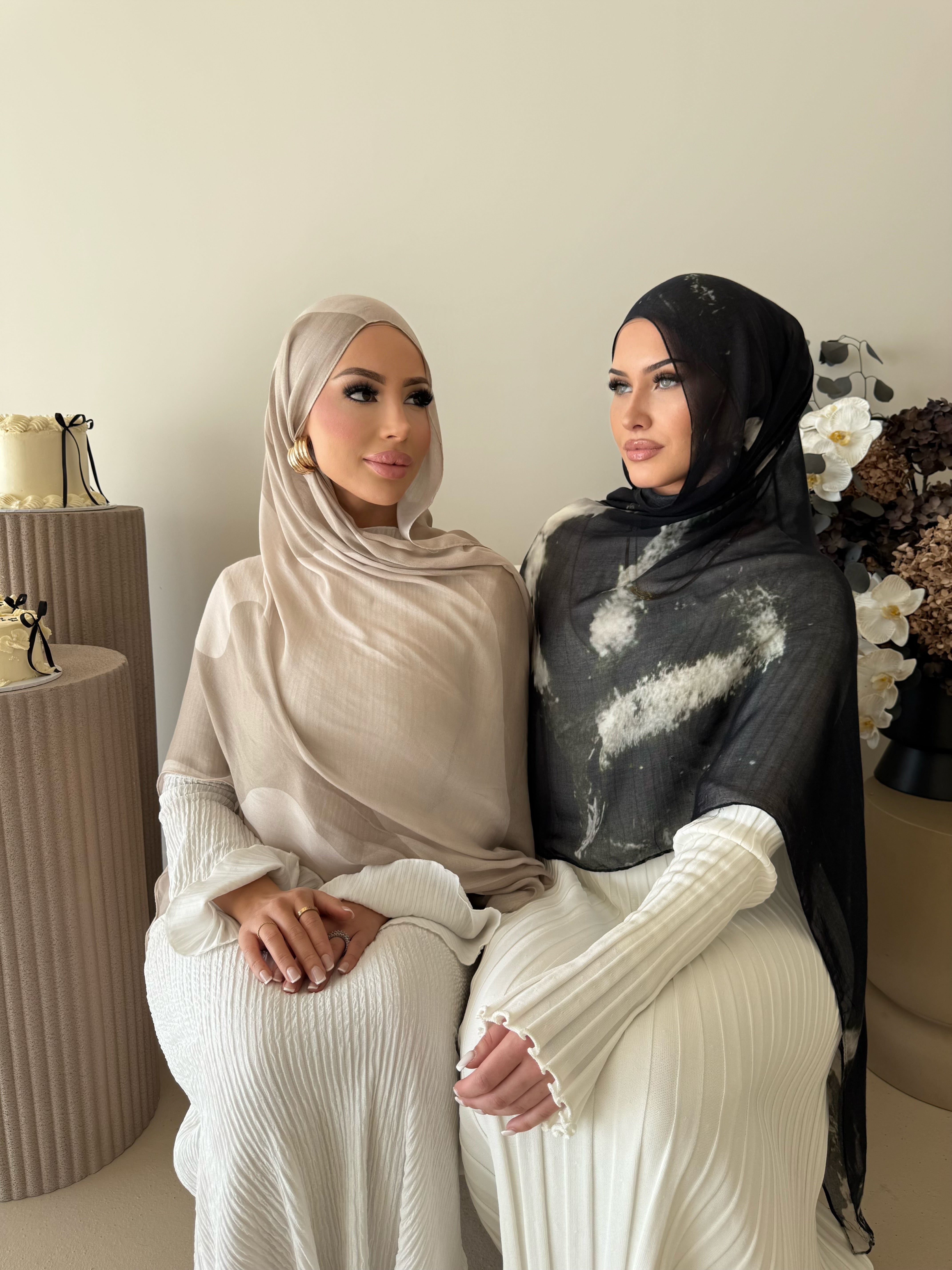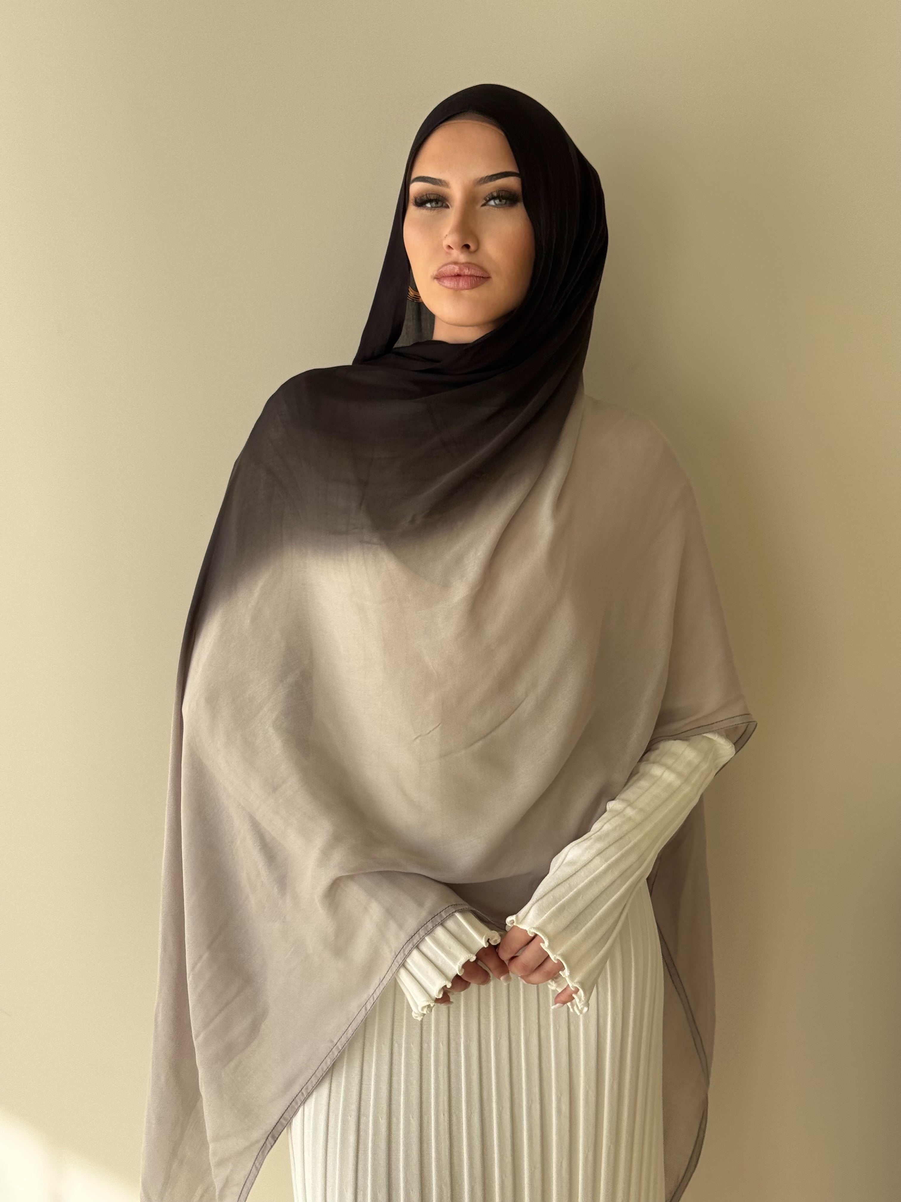 Every Tawq hijab is thoughtfully designed using premium modal: soft, breathable, and elegant. From subtle ombrés to bold seasonal prints, our wraps are made to move with you.